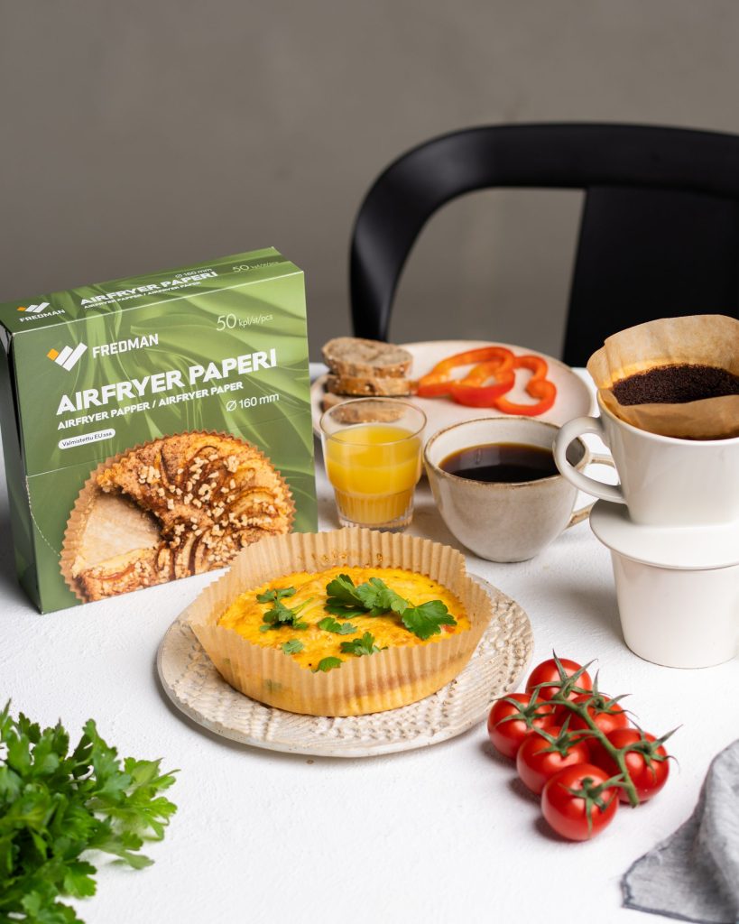 Airfryerit ovat vakiinnuttaneet paikkansa suomalaisten keittiöissä, ja niiden suosio on ollut jatkuvassa kasvussa, kun katsoo esimerkiksi S-ryhmän myyntidataa. Suomalainen keittiötuotteiden valmistaja Fredman vastaa kysyntään tuomalla kauppojen hyllyille airfryer-paperista uusia kokoja ja muotoja. Pyöreää paperia on nyt kahdessa koossa. Pieni pyöreä sopii erityisesti leivontaan. Airfryerissa voi pyöräyttää nopean piirakan tai vaikka munakkaan. Isompi soveltuu monipuoliseen kokkaukseen, kun valmistat isomman määrän ruokaa. Saatavilla on myös neliskanttista airfryer-paperia. Paperit kestävät korkeita lämpötiloja, eivät tartu ruokaan ja helpottavat puhdistusta.