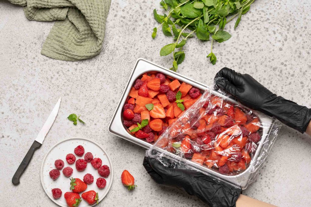 Elmu®huppu pitää ruoan tuoreena ja suojattuna. Elintarvikekelpoinen huppu soveltuu valmiiden annosten tai noutopöydän tarjottavien suojaamiseen. Huppu sopii jääkaappiin, pakastimeen sekä kuumatäyttöön ja kuumennukseen.